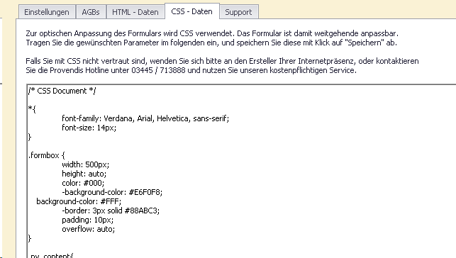 Der in Ihre Homepage / Website eingebundene HTML-Code lässt sich über die CSS-Daten farblich anpassen. Hierzu werden fundierte Kenntnisse im Bereich HTML / CSS benötigt.