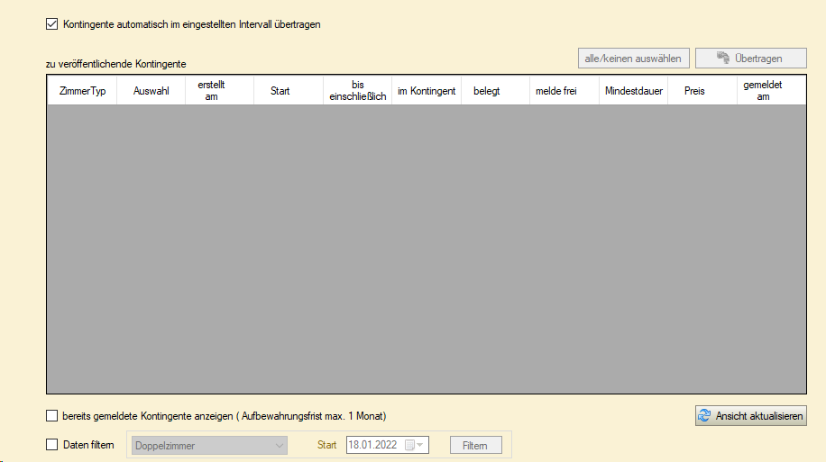 Kontrollieren Sie auch, dass wie im folgenden Abschnitt erklärt, ein Haken bei "Kontingente automatisch im eingestellten Intervall übertragen" gesetzt ist.